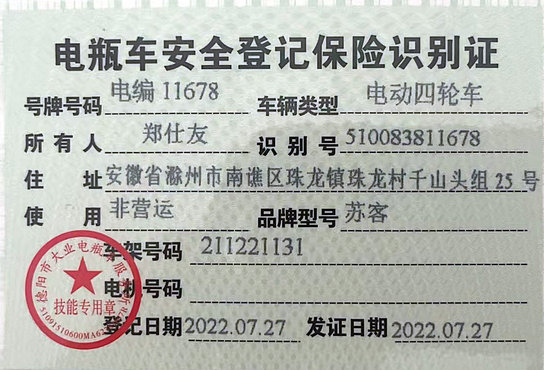 关于00456四轮电瓶车丢失公告