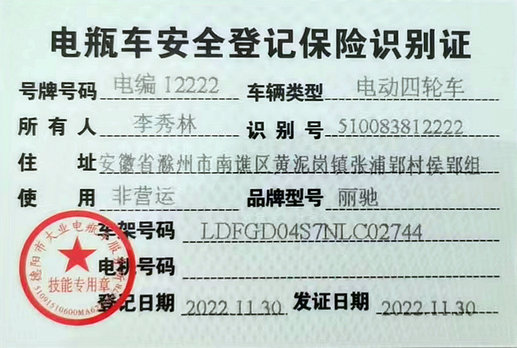 关于00456四轮电瓶车丢失公告
