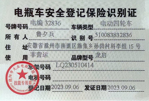 关于00456四轮电瓶车丢失公告