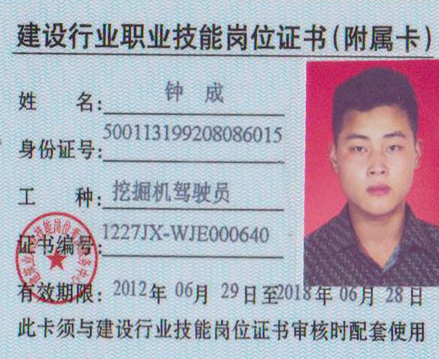 钟成500113199208086015